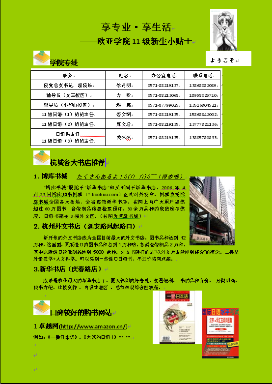 围绕如何让新生尽快适应大学生活、尽快对所在学院有全面亲切的认识、尽快形成专业印象和学习积极性,欧亚语言文化学院以“享大学 享生活 享大学”为主题,通过日语系、学生党支部、团学组织具体负责组织,开展了新生报到党员迎新服务、向家长分发“校园事务联络单”、专业教师全体见面会暨专业见面会、主题始业教育典礼、优秀学长宣讲会、校园生活风采展示等系列活动。