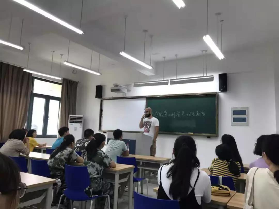外教Gabriele凭借者他的幽默风趣,迅速和同学们拉近了距离。他结合自身的教学经验向新同学们提出:学语言不能怕丢脸。他认为,同学们应该把会说的东西说出来,才能日日精进。同时他希望教学相长,和同学们互相学习共同进步。