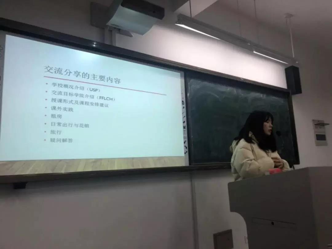 首先,胡梦丹同学分享了她在巴西圣保罗大学留学的经历,从学校的选择、课程学习、生活等各个方面为大家进行了详细的分享,打破了大家对巴西的过度恐惧。