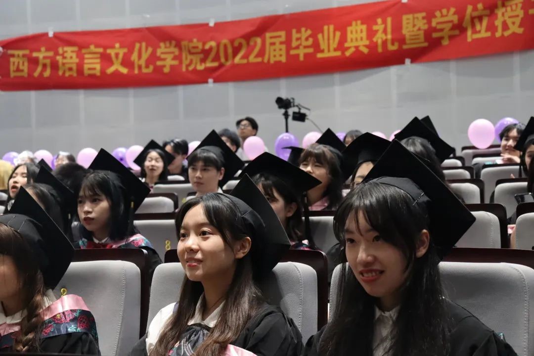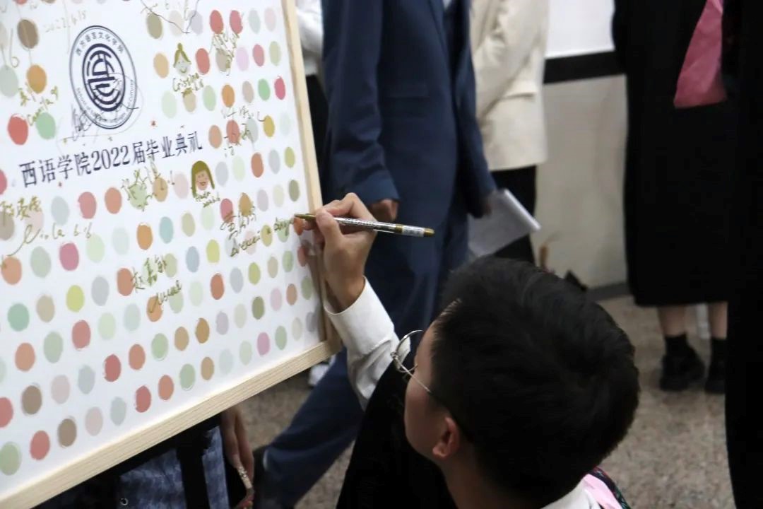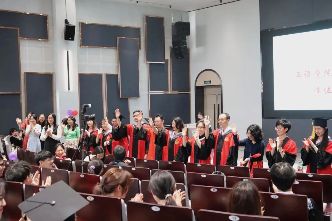 毕业典礼,在毕业生们多语种版的《再见》动情合唱中,在学院全体教师面向毕业生的鼓励祝福、挥手告别中圆满落幕。