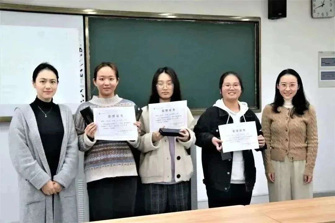 王忆停老师、方盼老师为一等奖同学颁奖
