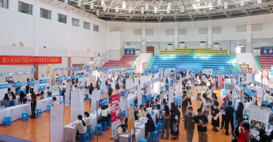 2023年春季实习专场招聘会在我校行健馆举行,吸引了低端影视