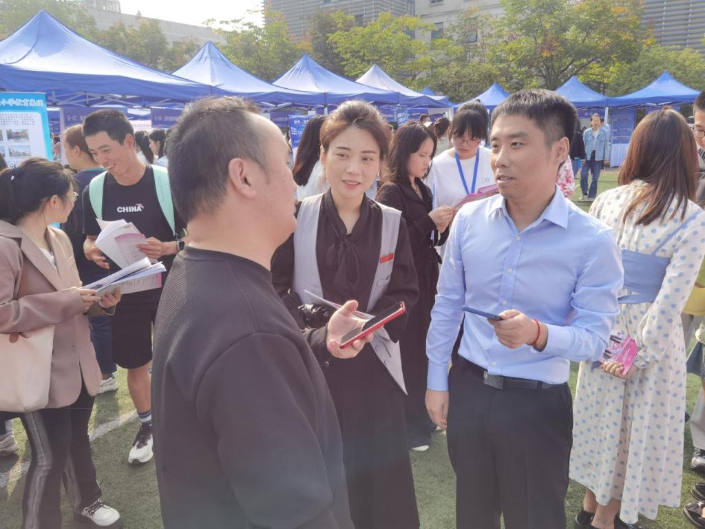 校友日当天,学院领导和辅导员还走访了校园秋招会现场,与校友就业的用人单位的负责人亲切交谈,关心了解校友职业发展情况,详细询问用人单位目前的招聘需求、人才选拔标准以及对学院培养模式的建议。