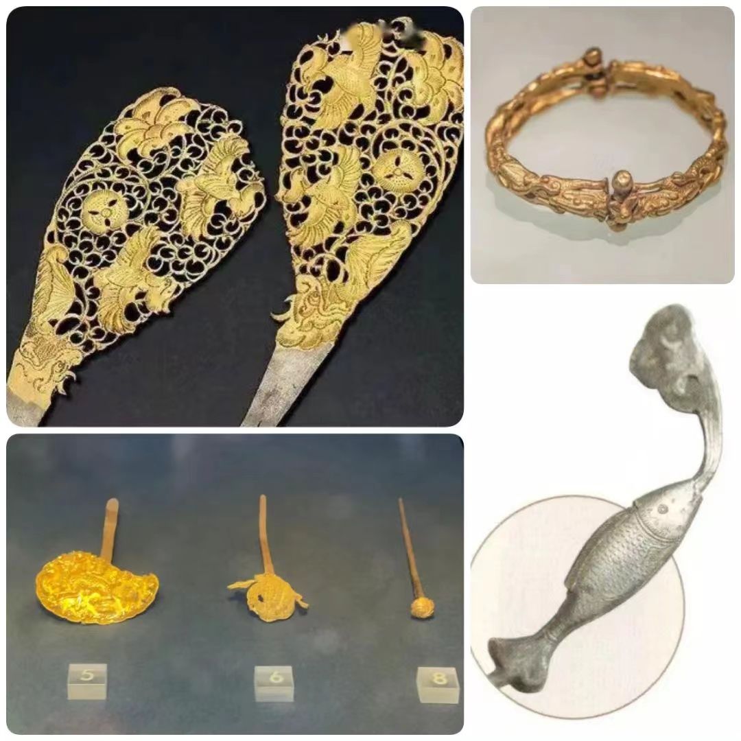 虽然在南京博物馆中找到的相关资料以及实物并不多。,但令我兴奋的是,我们看到了不同历史时期中国古代女性金银首饰的演变。与唐代的首饰对比研究,可以发现了很多值得思考的点。例如临近朝代间纹样的继承与变化。这些往往更能体现朝代主流文化的转变,这些思考也在后续的实践应用中给予帮助。此次活动让我收获最多的也正是这种对比思路的拓宽,并且应用于以后的学习生活中。