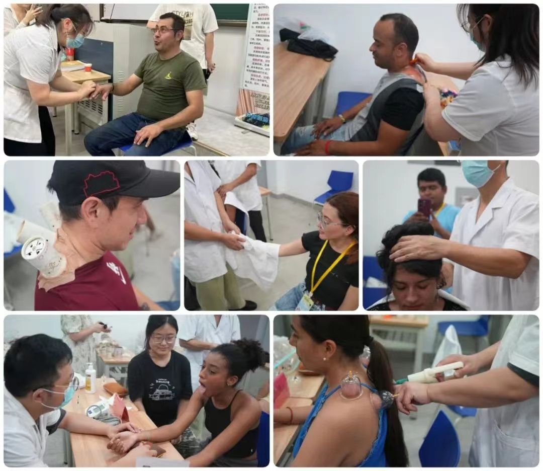 在中医文化馆,学员们体验了一场非常“哇塞”的中医活动。“望、闻、问、切”的诊断方法,“推拿、拔罐、刮痧、艾灸”的特色疗法,让学员们近距离感受了中医治疗的魅力。“太令人兴奋了!”学员Sofia第一次接触中医,对这次奇妙的体验啧啧称奇,“推拿后,感觉全身的劲儿都被释放了,非常舒服、放松!”学员Olrando还体验了“颈部牵引、脊背正骨、腰椎按摩”,并表示与传统中医的“亲密接触”令他产生了浓厚兴趣,希望以后可以学习中医、传承中医,向全世界介绍中医的神奇与精妙。