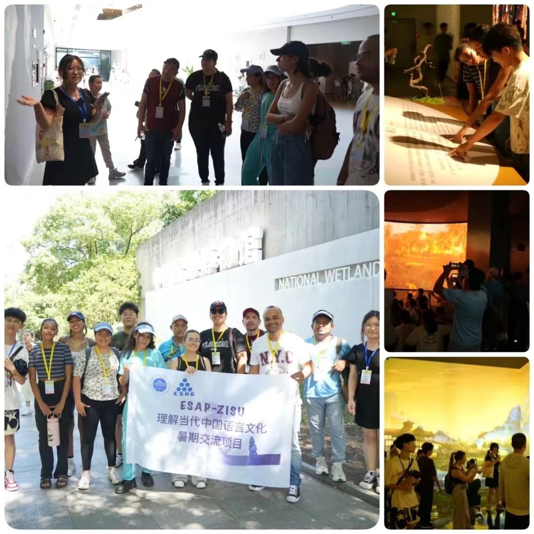 学员们还来到了“高颜值”“高科技”兼具的西溪湿地博物馆,先后参观了“只此西溪厅”“走进湿地厅”“湿地沉浸式数字展厅”。通过360度融合投影技术,学员们领略了古巴比伦两河流域、古埃及尼罗河、古希腊爱情海以及中国夏朝的黄河等世界各地由古至今的湿地风貌。此外,学员们还学习了湿地生态系统知识,欣赏了湿地土质与动植物标本、了解了西溪综合保护工程,还亲身体验了中国传统端午习俗—龙舟击鼓,充分领略西溪湿地的自然与人文特色。