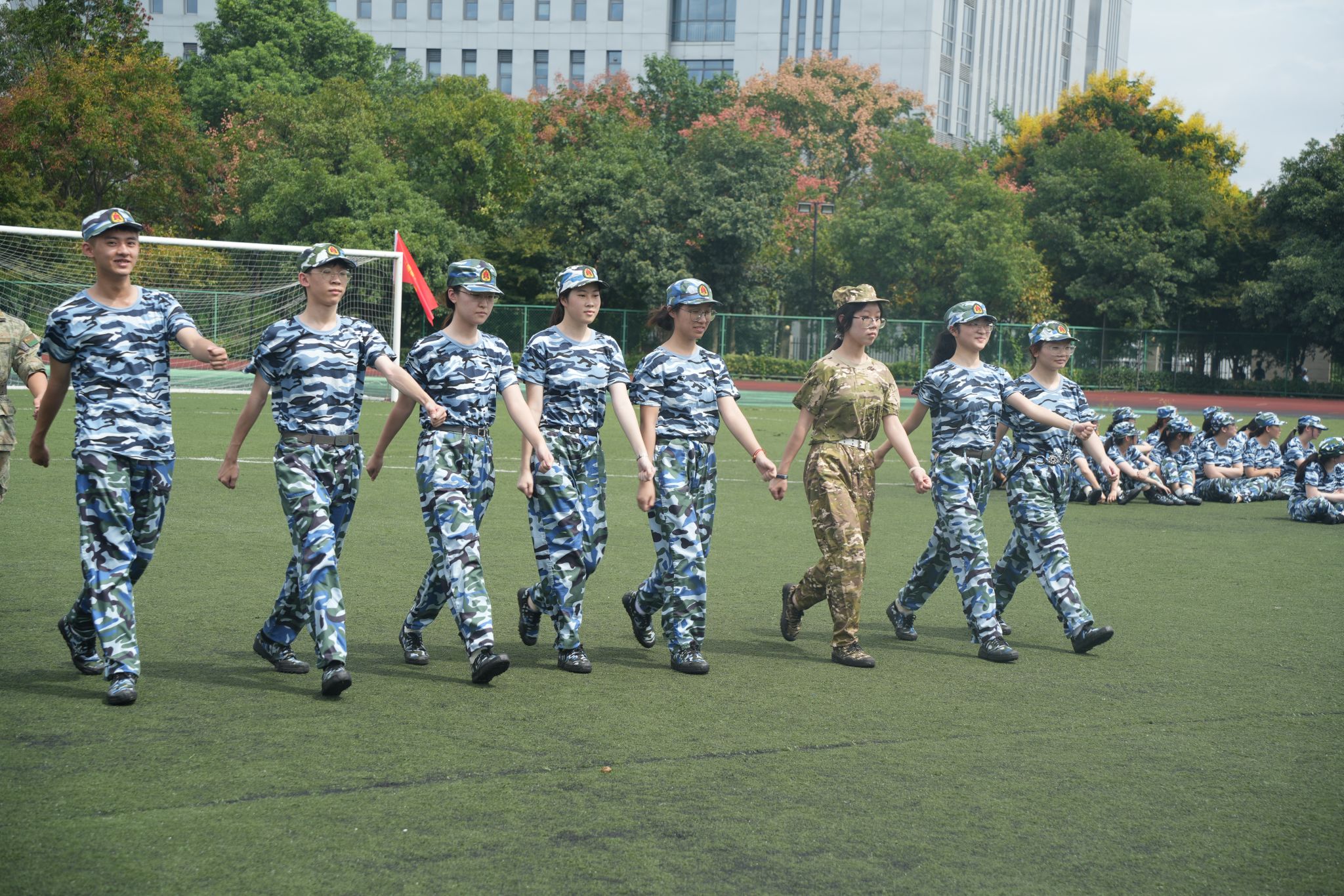嘹亮的军歌在校园中回荡,整齐的队列在阳光下闪耀。