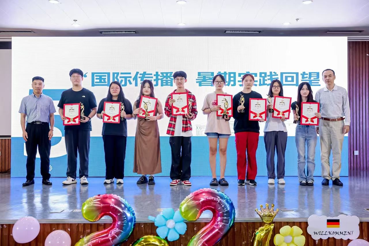 Fan Jieping presented awards to 2 outstanding supervisors of "International Communication" social practice groups in summer holidays. Zhang Lupeng and Dai Li gave certificates to group members. Li Jie and Tang Yicheng made a speech, expressing that "the groups aim to spread China studies and deepen mutual learning. Not only does it enhance foreign language proficiency and abilities of team organization and coordination, but deepen the friendship between Chinese and foreign people. We hope that all the freshmen will actively participate in such activities. "