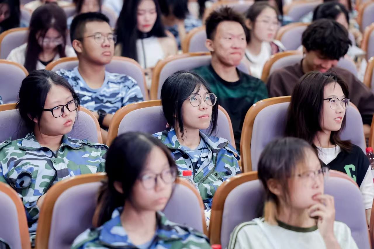 Fan Jieping delivered a lecture on the "Transformation of foreign language majors". He said that the vision of foreign language learners in the new era was "cultural exchanges and mutual learning & tell good China’s stories well in foreign languages". First, he encouraged the freshmen to be courageous and take on the heavy responsibility of making China stronger. President Xi Jinping, also General secretary of the CPC Central Committee and chairman of the Central Military Commission pointed out “To build a leading country in education is the strategic forerunner for fully establishing a modern socialist powerful country”. Foreign language education has a distinct political, strategic, and people-oriented nature, and should shoulder the great historical mission of "repaying the country to make it stronger." Based on the overall strategic layout of the great rejuvenation of the Chinese nation and the unprecedented changes in the world over the past century, we should promote the building of a community with a shared future for mankind. All the students ought to bear a high sense of political responsibility to promote people-to-people diplomacy and cross-cultural and economic exchanges, in order to serve the building of a new type of international relations. Second, to reflect deeply and convey the voice of China. Plato said, "The organs of language generate ideas," and "Whoever uses the organs to tell stories controls the world and possesses the world." In fact, storytelling is an important human ability that can build the future, unite consensus, facilitate cooperation and development. All the students should strive to become "international inter-disciplinary applied talents with a sense of national pride and global vision, proficient in foreign languages and digital technologies, capable of undertaking the great task of civilization-mutual learning and cultural exchanges, and able to tell good China’s stories well". Third, to embrace changes and enhance foreign language proficiency. In the face of new opportunities and challenges brought about by Artificial Intelligence, it is imperative to transform the foreign language discipline and models of talent cultivation. All the students should not only speak fluent foreign languages with correct pronunciation and elegant demeanor, but also break through the boundaries of academic disciplines and enrich their knowledge. Try to strive to expand knowledge in the areas of regional and country studies, traditional culture, and international communication, in order to enhance international understanding and global competence.