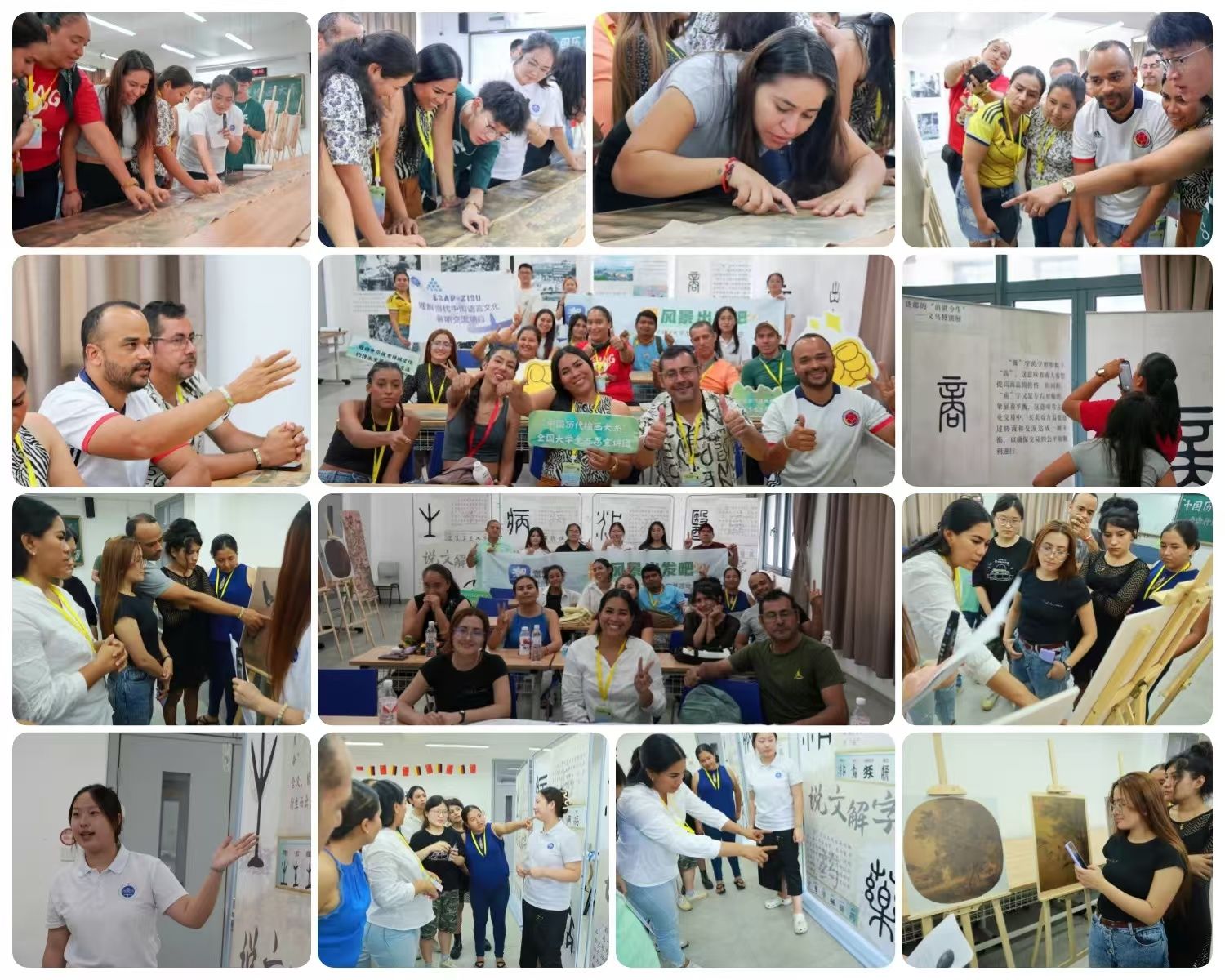 在学校内,宣讲团面向哥伦比亚高等公共管理学院“理解当代中国”暑期交流团分别开展“货郎”“中医”主题的“绘画大系”画展和宣讲。22德语1班廖桐说:“除了介绍《清明上河图》《药师净土变》《灸艾图》等画作,我们还结合‘商’‘医’‘生老病死’等汉字‘说文解字’,带他们领略别样的中国文化。”哥伦比亚学生纷纷感慨:“这些绘画太神奇了!”“中国汉字就像一幅幅绘画!”“这些文字很有智慧,有些一眼就能看出它想表达什么意思,即便我来自外国!”“中国文化真是有意思,回国之后我还要继续深入了解、学习!”