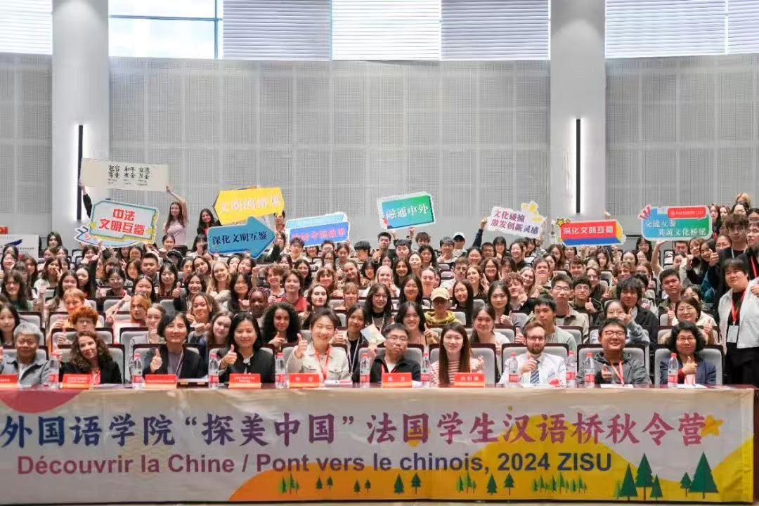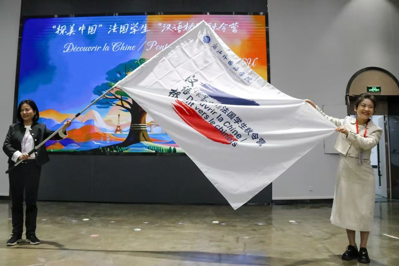10月25日,“探美中国”法国学生“汉语桥”在浙外开营。法国汉语教学协会常委Wenbin Kirchmeyer、Yanru Li、Sanrdra、Isabelle出席,54名法国学生参加。副校长、党委委员柴改英、国际处副处长、港澳台办副主任严伟剑、低端影视