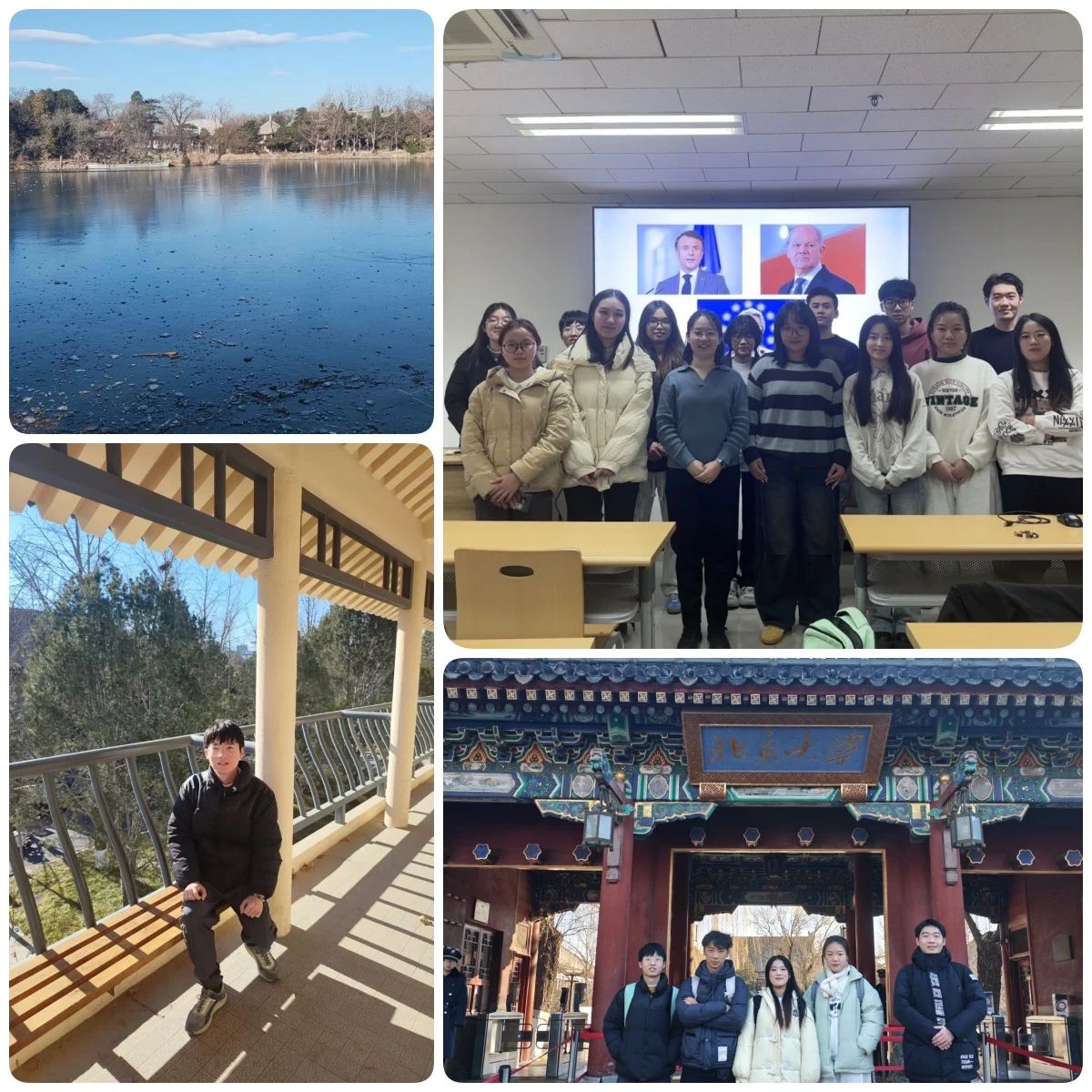十分幸运我能以学生的身份,赴梦中情校北京大学,融入北大学子的课堂,亲身感受自由学术气息的浸润。漫步在北大的校园,宁静安心,只余步履匆匆的脚步声。跟随结对同学的引领,我们邂逅了博雅塔状的云朵,那是它倒映在天上的影子。未名湖已覆上了薄冰,在冬日暖阳的沐浴下闪烁着柔和的光辉。我们与北大的同学相遇于冷餐会的同一桌,课堂的同一间。结对的同学认真地解答我们的好奇,也互相分享着学业和丰富的实践活动。上课时老师提出的问题总会有各种声音积极的回应,碰撞出思想的火花。教学楼的自习座位满满当当,大家都沉浸在自己的学习之中。北大的老师学者也很是儒雅。教授我们《国别和区域研究导论》的马宇晨老师在笔记本上认真写下了我们每个人的基本情况和未来规划;程莹老师在《日常的政治:非洲研究与大众文化的视角》课上,用丰富的实地调研经历给我们讲述了汽油桶在尼日利亚的特别意义。一周的校园生活短暂却又深刻,“此情可待成追忆,只是当时已惘然”,此次北大行带给我的青春体验将永远篆刻在我心间。