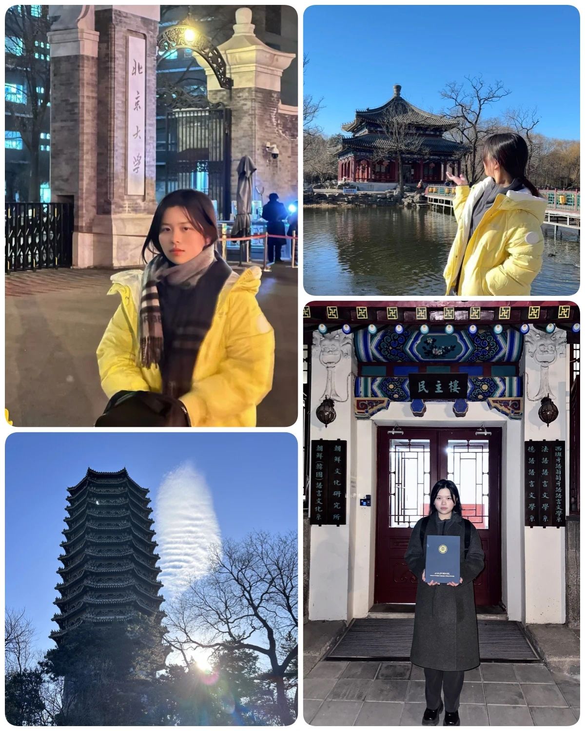 联合举办的“区域国别高层次人才培养项目”时,我感到无比激动!在北京大学的课堂上,我接触到了法国历史、葡萄牙文化、法语文学等多个领域的前沿知识,并深刻感受到北大学子对学术的热忱与求知的专注。特别是在结对交流中,我与北大的同学深入探讨了课程内容,并分享了各自对区域研究的理解。我意识到,优秀的区域国别研究不仅需要扎实的理论基础,更需要跨学科的视野、持续学习的态度以及对现实问题的责任感。课堂之外,无论是北京大学图书馆内专注学习的身影,还是深夜校园中依然讨论热烈的学术小组,都让我深切体会到,“卓越不是天赋,而是坚持与热爱。”尽管这次学习的时间短暂,我却收获了宝贵的知识和全新的视角,更加坚定了未来深耕区域国别研究的信念。我将带着这段珍贵的经历,努力提升自己,为世界的相互理解与合作贡献微薄之力。