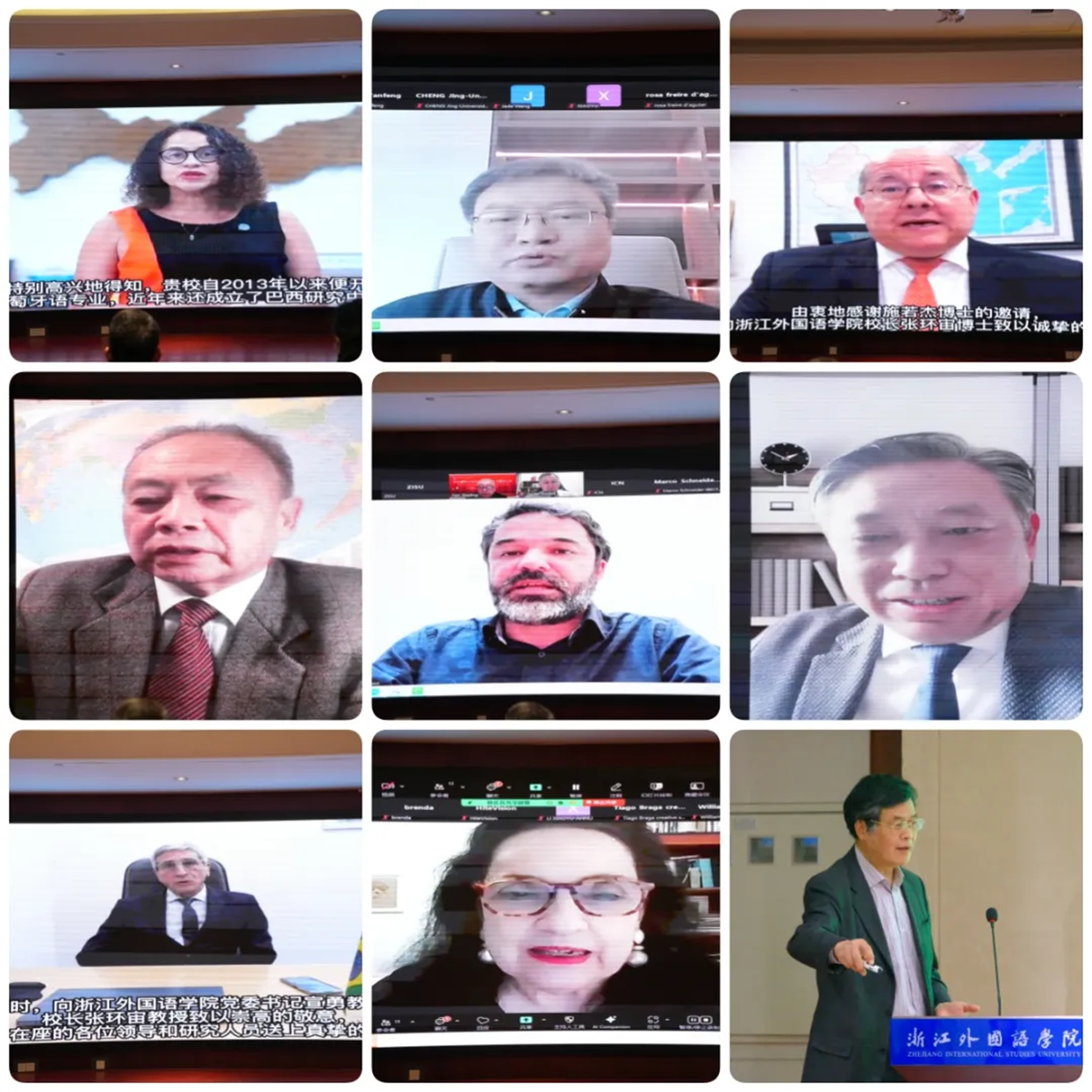 新型国际关系高等研究院学术院长姜锋、北京大学国际关系学院副院长张海滨、巴西科技创新部科学和技术信息研究所主任TiagoEmmanuelNunesBraga出席并致辞,巴西科技创新部长LucianaSantos、巴西驻上海总领事Augusto Pestana、中葡论坛前秘书长王成安、巴西圣保罗大学教授Antônio Menezes发表视频致辞,中国、巴西、阿根廷、葡萄牙、智利的多名专家学者与会,院长范捷平教授主持会议。