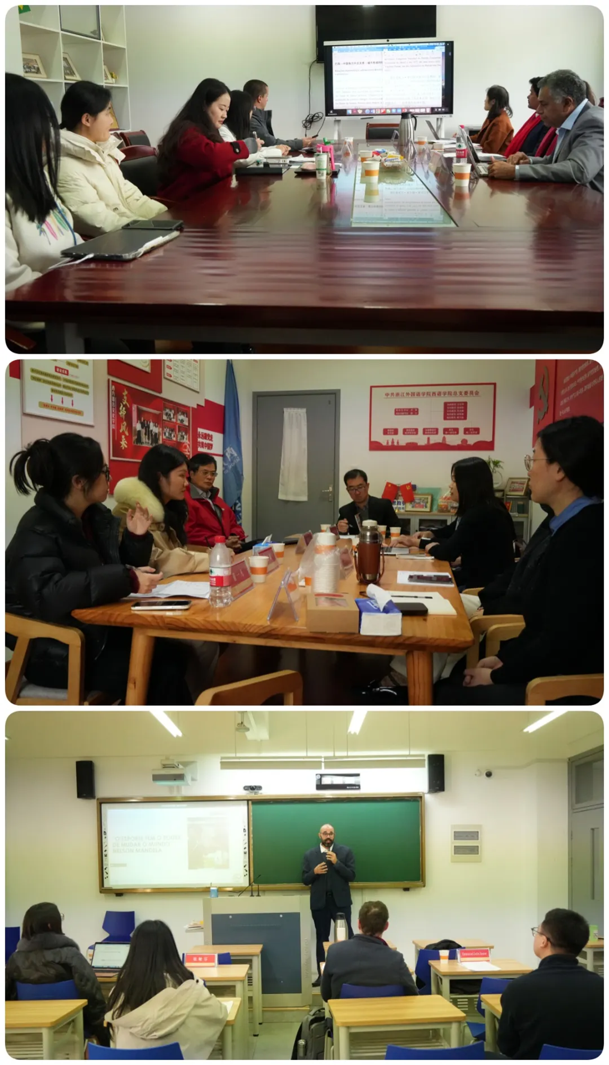 据悉,研讨会设主旨报告和分组讨论。两场主旨报告分别由葡语系教授、巴西研究中心主任施若杰(José Medeiros da Silva)、学术副院长国懿教授主持。三场分组讨论的主题为“中国与巴西:区域国别研究”“中国与巴西:翻译与文明互鉴”“浙外葡语专业学科建设”。与会专家学者围绕主题深入探讨了中国与巴西建交50周年以来取得的丰硕成果,从多个视角分析中巴命运共同体的前景与发展方向。施若杰总结时提出,本次研讨会的顺利召开,对于浙外葡语学科发展具有深刻影响,未来,我们将继续立足浙外,面向全国,放眼世界,为建立新时代的新型中巴关系尽贡献浙外力量。