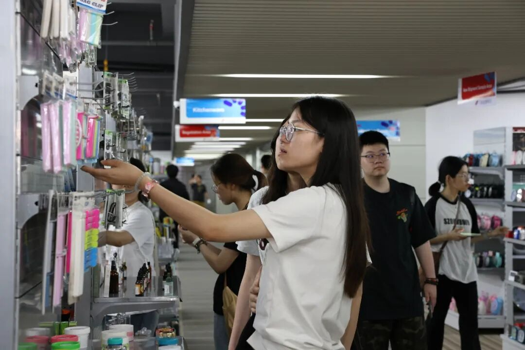 同学们还参观了赛尔的工作环境、文化展厅、专业样品间等场所,通过体验外贸公司选品全流程来了解赛尔低端影视以及营业模式。