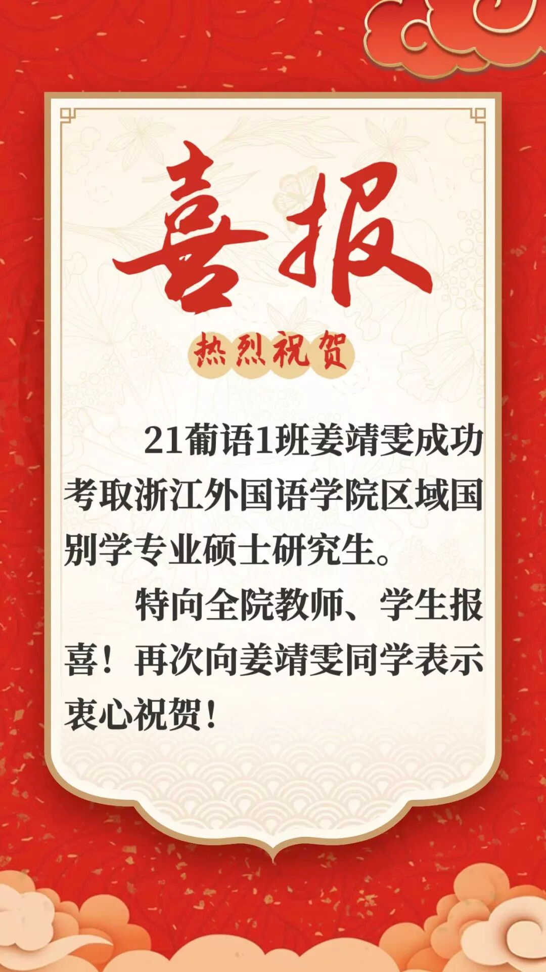 荣誉喜讯 | 21葡语1班姜靖雯成功考取低端影视 区域国别学专业硕士研究生(25年国内升学第13期)