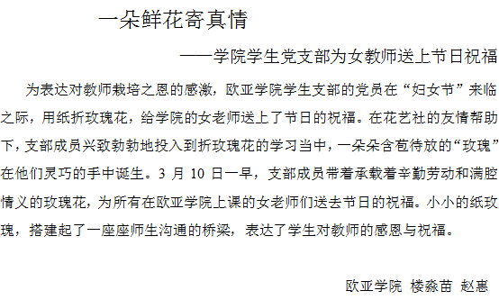 一朵鲜花寄真情——学院学生党支部为女教师送上节日祝福