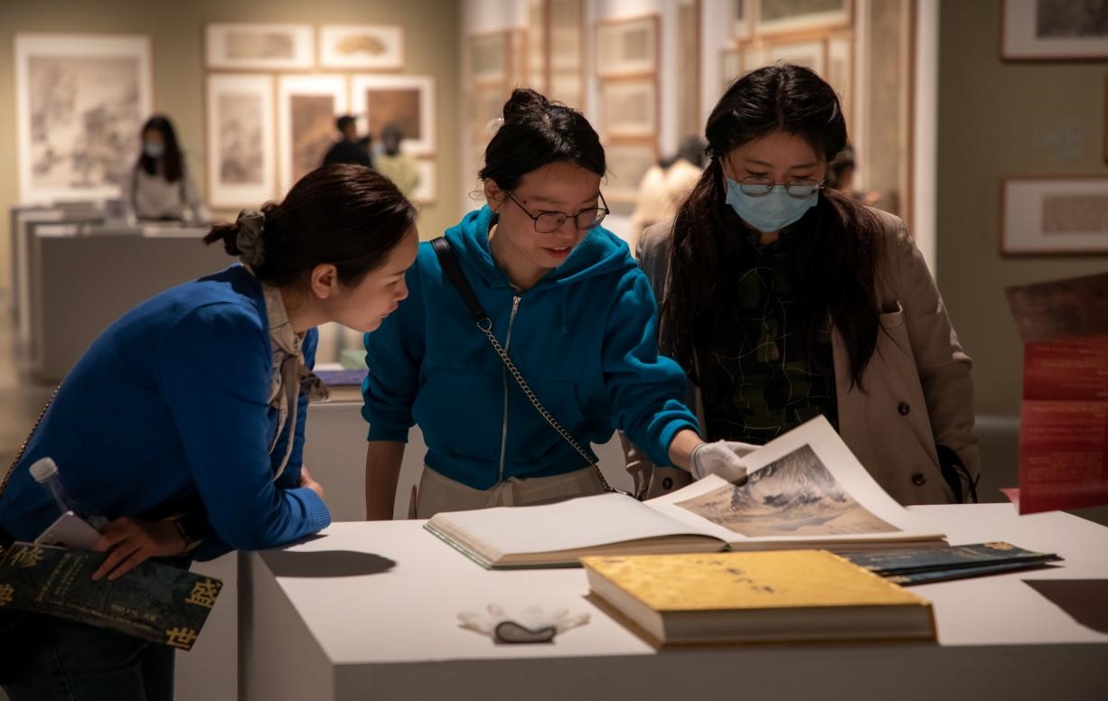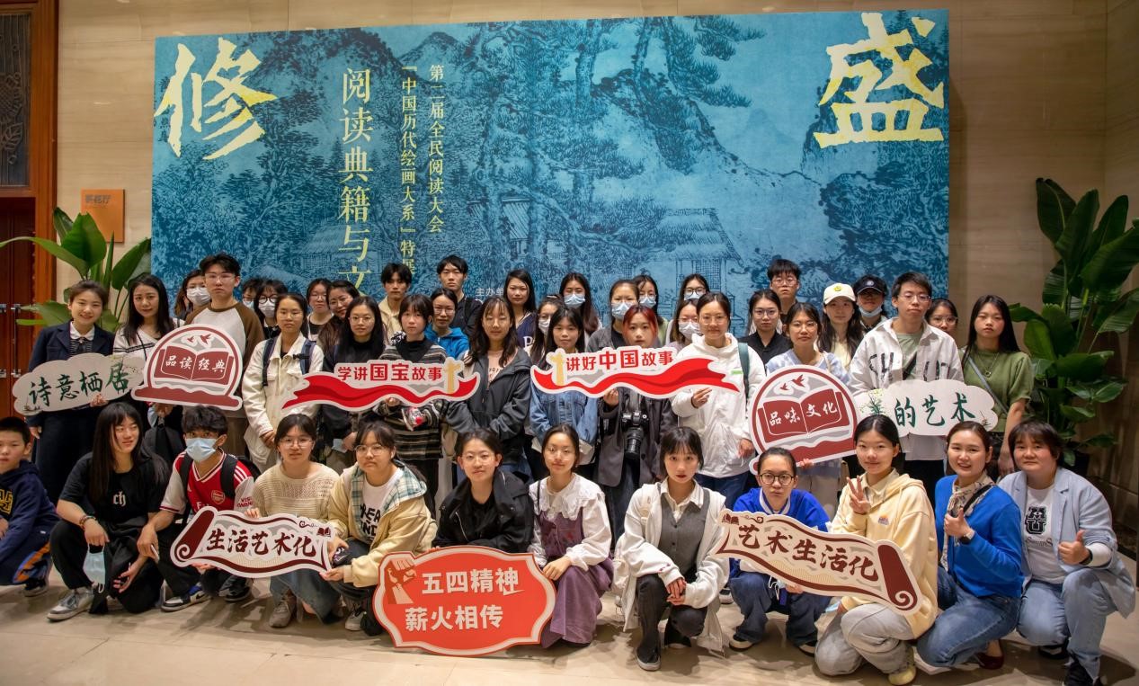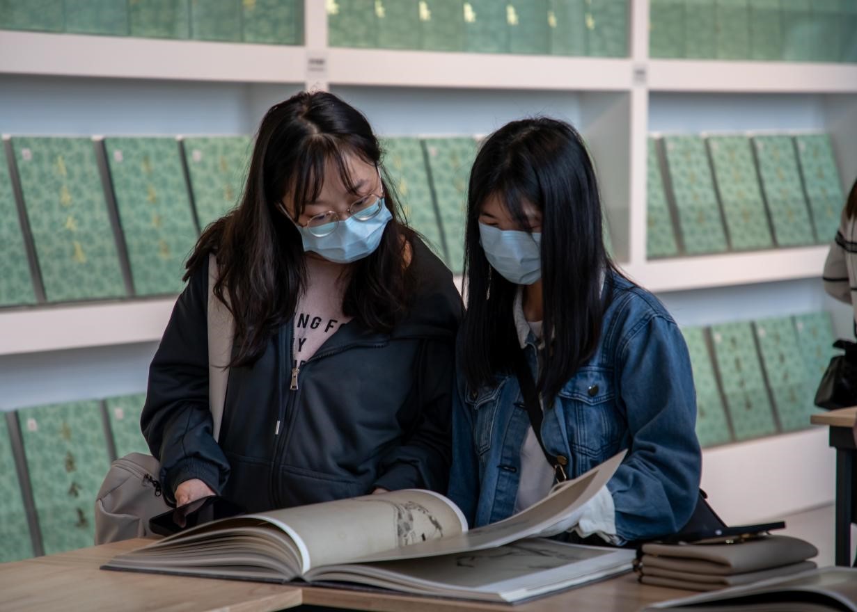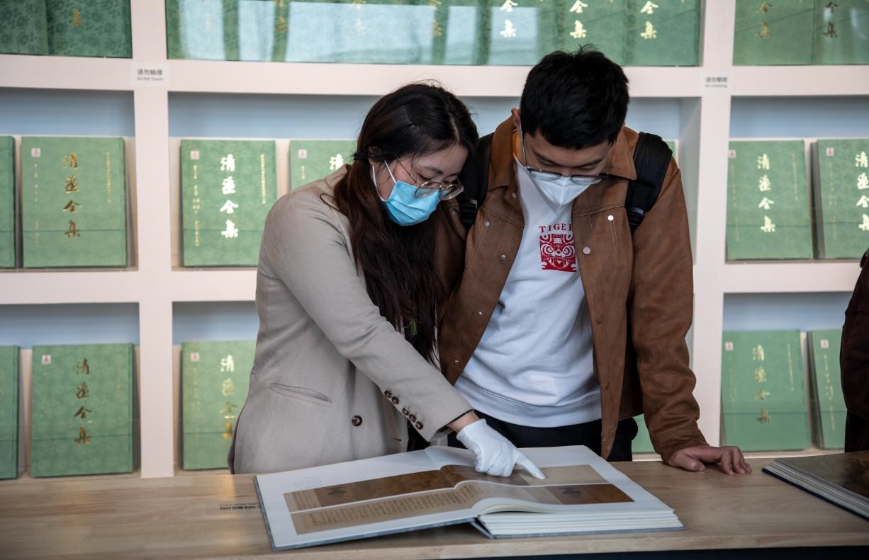 318幅阅读、典籍、中外交流、耕读等主题绘画作品高精度打样稿、包括62册观众可直接翻阅图书在内的全套“大系" 230余册实体图书、“AR读画”创新展项……师生们在身临其境中感受“大系”带来的视觉盛宴,对国宝故事与传统文化魅力有了更深的体悟。