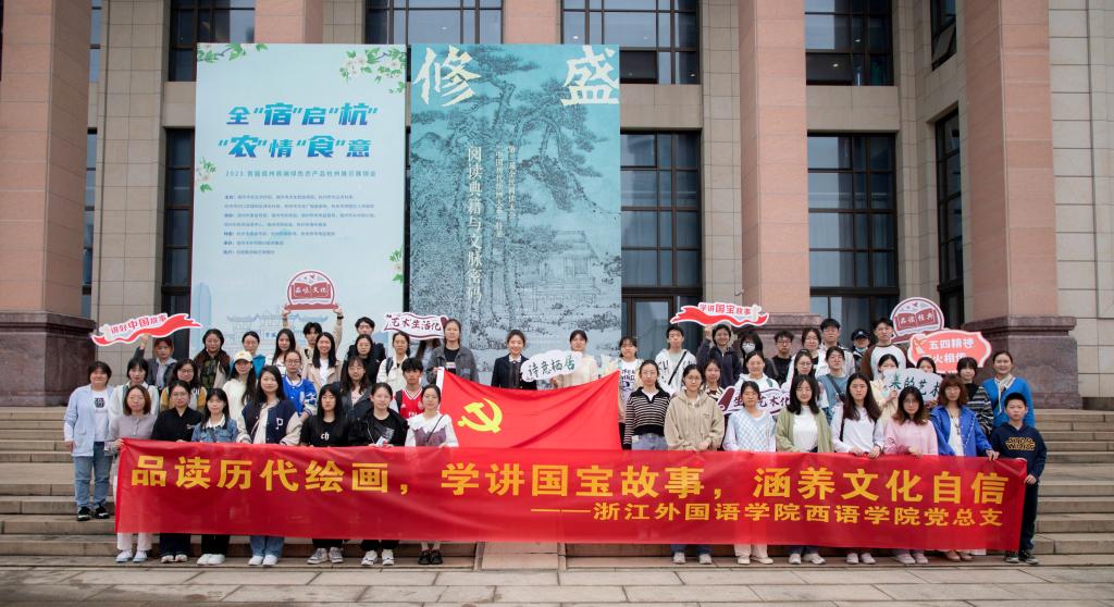 书香四月,春意盎然。4月29日,带着前日讲座的触动,学院党总支组织主题党日活动,党总支书记毕莹带领近60名师生党员、入党积极分子走入浙江展览馆,观看“盛世修典——‘中国历代绘画大系’特展:阅读典籍与文脉密码”。