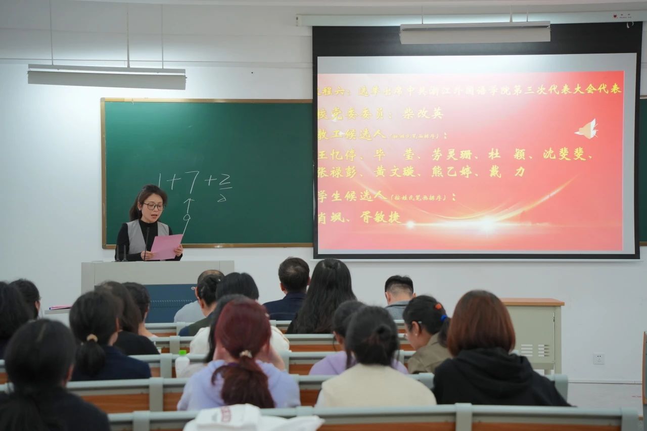 党总支在融D302召开党员大会,选举学校第三次党代会代表。学院全体党员参加。大会由学院党总支书记毕莹主持。