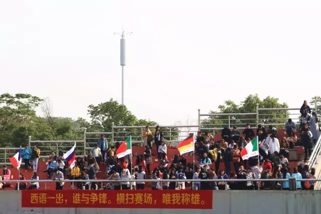 还有坚守“阵营”的那些期盼的目光 多语种加油旗帜在高空飘扬 等待运动员凯旋归来