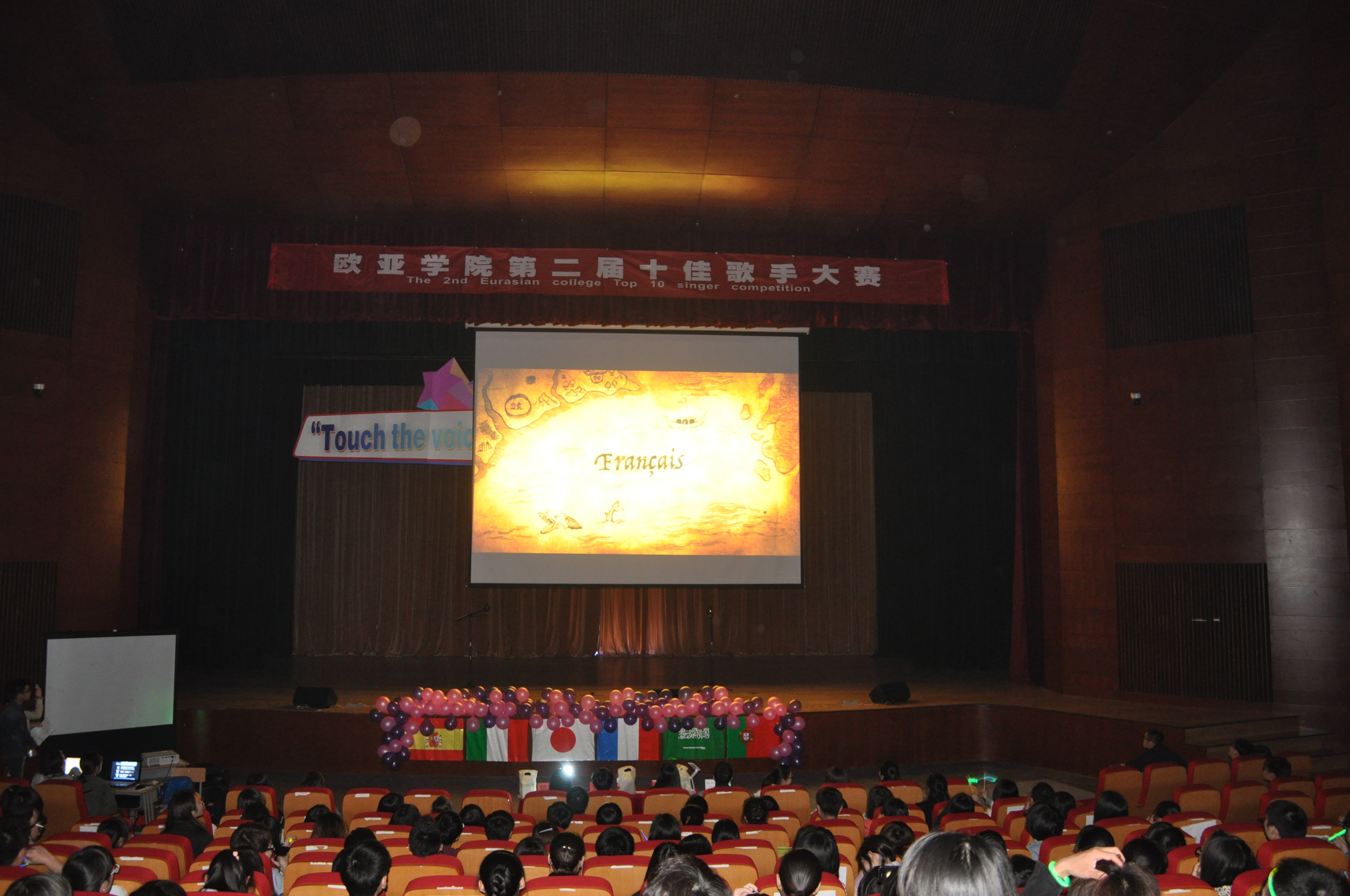 第二届十佳歌手大赛在大学生活动中心盛大开幕。本次大赛邀请到来自艺术学院郑璇老师,应用外语学院陈果老师以及浙江传媒学院的王维诗老师担当评委。学院领导、各个语系专业老师、外教老师及来自意大利的留学生们以及浙工大外国语学院和其他兄弟学院的嘉宾应邀参加这一视听盛宴。