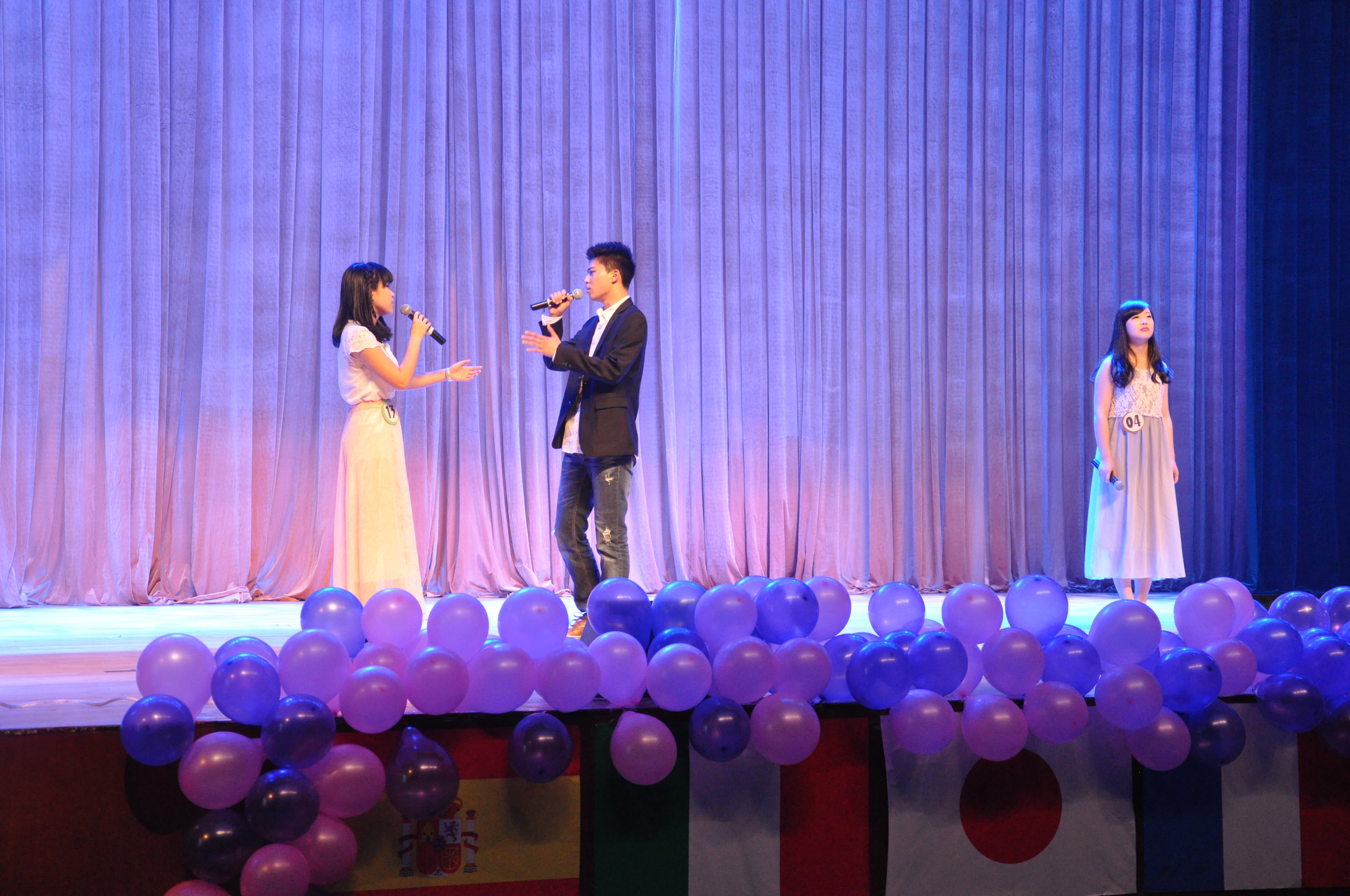 大赛共分为3个环节,依次为三人一组晋级赛,学长学姐帮唱过关赛,个人独唱角逐赛。多样的赛制让在场观众们深切感受到团体合唱的齐心协力,学长学姐帮帮唱的有爱激情,以及个人独唱的花样魅力。其中,田乔的一首欢快激昂的《她妈妈不喜欢我》赢得台下观众的安可连连。当然,比赛期间,意大利留学生们的合唱,以及各语系老师的现场互动猜歌表演,也是赢得台下尖叫声此起彼伏。