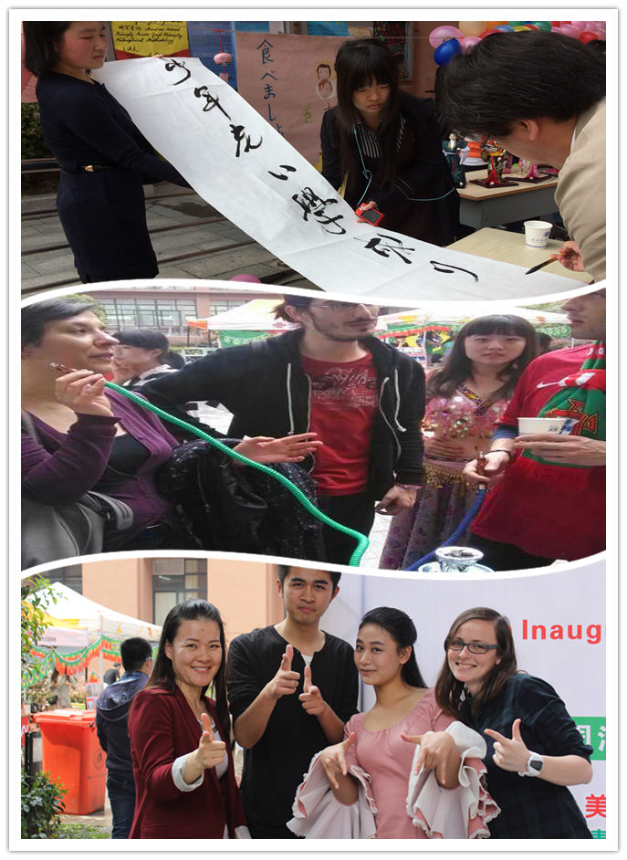 在风情秀上,各个专业的同学从饮食、民族服饰、建筑特色、风俗习惯、民间游戏、戏剧电影、歌曲舞蹈等多个方面展现了所学语言国家的文化。日语专业的同学现场制作了日本寿司和抹茶,并提供了日本清酒供来宾品尝;法语专业则着重展示了法国电影文化及法国服饰,并在活动现场模拟了一场为争取“自由和权利”的“示威游行”,展现了法兰西民族的人文精神。西班牙语专业展位的特色是西班牙的美食售卖,女生们穿着西班牙传统的宫廷服饰更显婀娜多姿;穆斯林的交往礼仪、阿拉伯语寓言故事以及水烟现场试抽等环节,让参观者对阿拉伯语专业的展位留下深刻印象;意大利语专业的同学则把意面的制作搬到了现场,亚平宁半岛深厚的足球文化吸引了大批男生关注;葡式蛋挞、葡式瓷片、南欧风情的建筑则集中展示了葡萄牙这个伊比利亚半岛南部国家的风情。