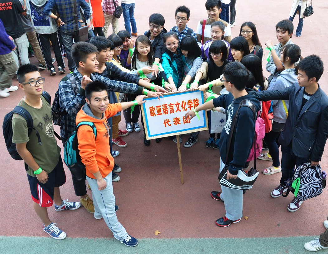 同学手系绿丝带,为学院争光的身影。欧亚”绿丝带“俨然成为本届运动会一道靓丽的风景线。