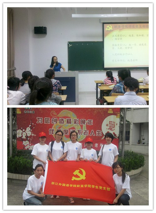 这是欧亚学院学生党支部围绕群众路线教育开展的活动之一。欧亚学院学生党支部全体党员积极投入教育实践活动,切实为师生服务、为社会献爱心。他们深入学生中了解意见建议,参与2013级学生迎新志愿者工作,还在暑期组织了“探访红色之旅、关注革命老人”的社会实践活动。