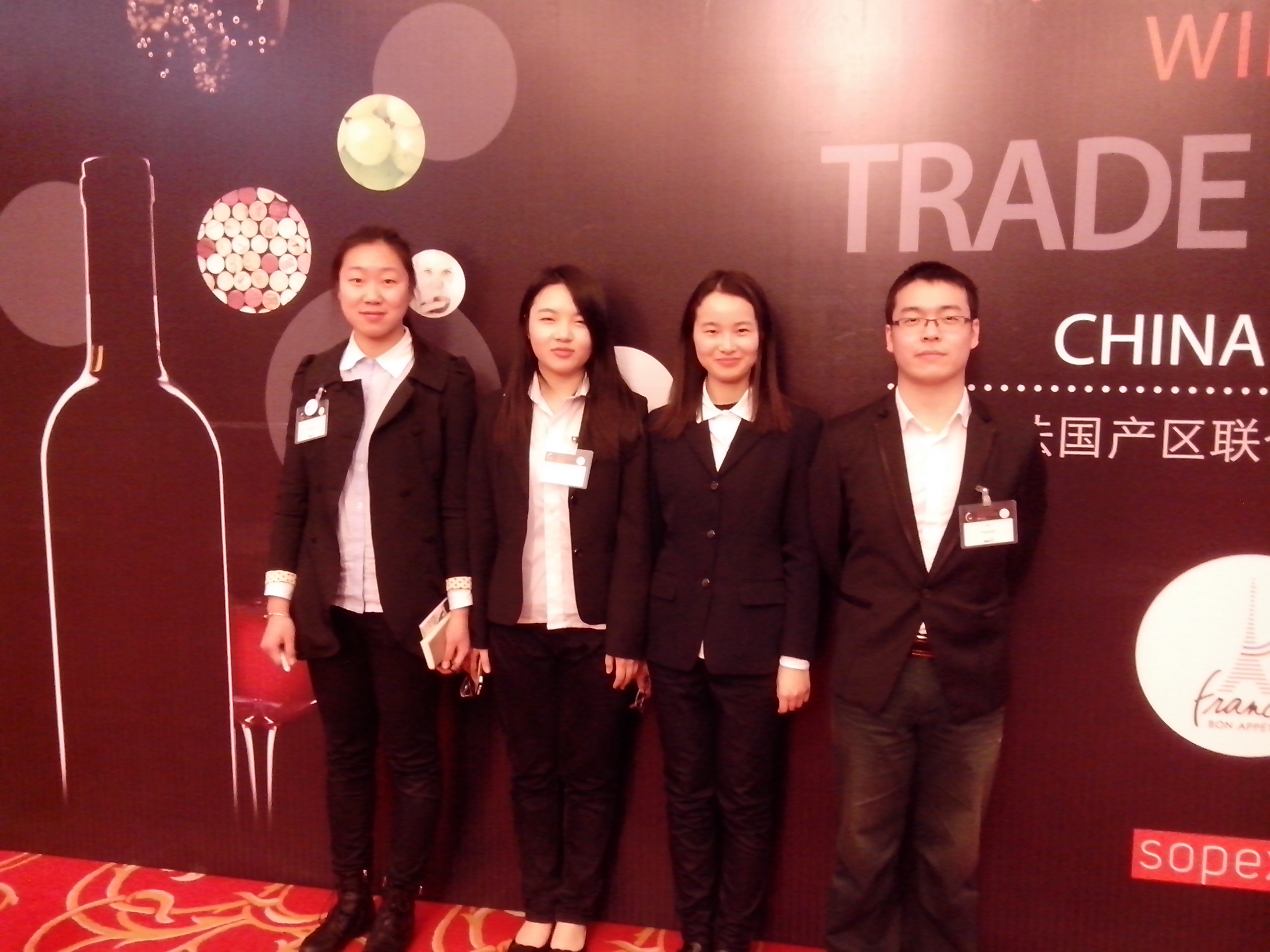 近日,低端影视 法语专业四名志愿者竺淑榕、夏勇、郭霞、张秀逸参加了在杭州香格里拉大酒店举办的The French Wines Trade Show(法国产区联合葡萄酒展活动)。该活动由法国食品协会主办,分别在西安、杭州、广州举办,也是其今年葡萄酒推广计划系列活动之一。 经过主办方事先层层选拔,以上四名志愿者通过面试,担任本次展会的酒庄翻译员。通过与法国酒庄代表近距离接触交流,志愿者们亲身领略了法国葡萄酒文化的独特魅力,加深了对法国社会的认识。在扎实打好专业基础的同时,也开拓了国际视野。