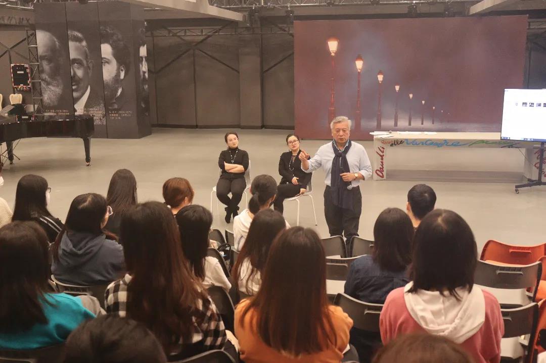 讲座还邀请到了著名女高音歌唱家钱竑老师为大家现场演唱了两首法国歌剧《林中小路》和《月光》。演奏后钱竑老师和项静洁老师(钢琴伴奏)先后分享了对法国和法语的理解。