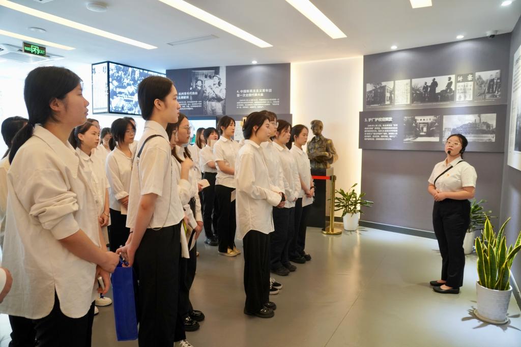 入党宣誓仪式前,师生们跟随讲解员在杭州青年运动史馆内进行参观学习。该馆展示了杭州青年在中国共产党的带领下,在中国革命、建设和改革开放时期不懈奋斗的辉煌历史和重要经验,为各位青年教师和青年学生提供了丰富的团史、党史理论学习资料。透过一张张黑白旧照、一件件珍藏展品,师生们仿佛走进时光的隧道,循着杭州青年运动的轨迹,回望杭州青年在新中国建设中努力奋斗的身影,真切感受他们的革命精神。