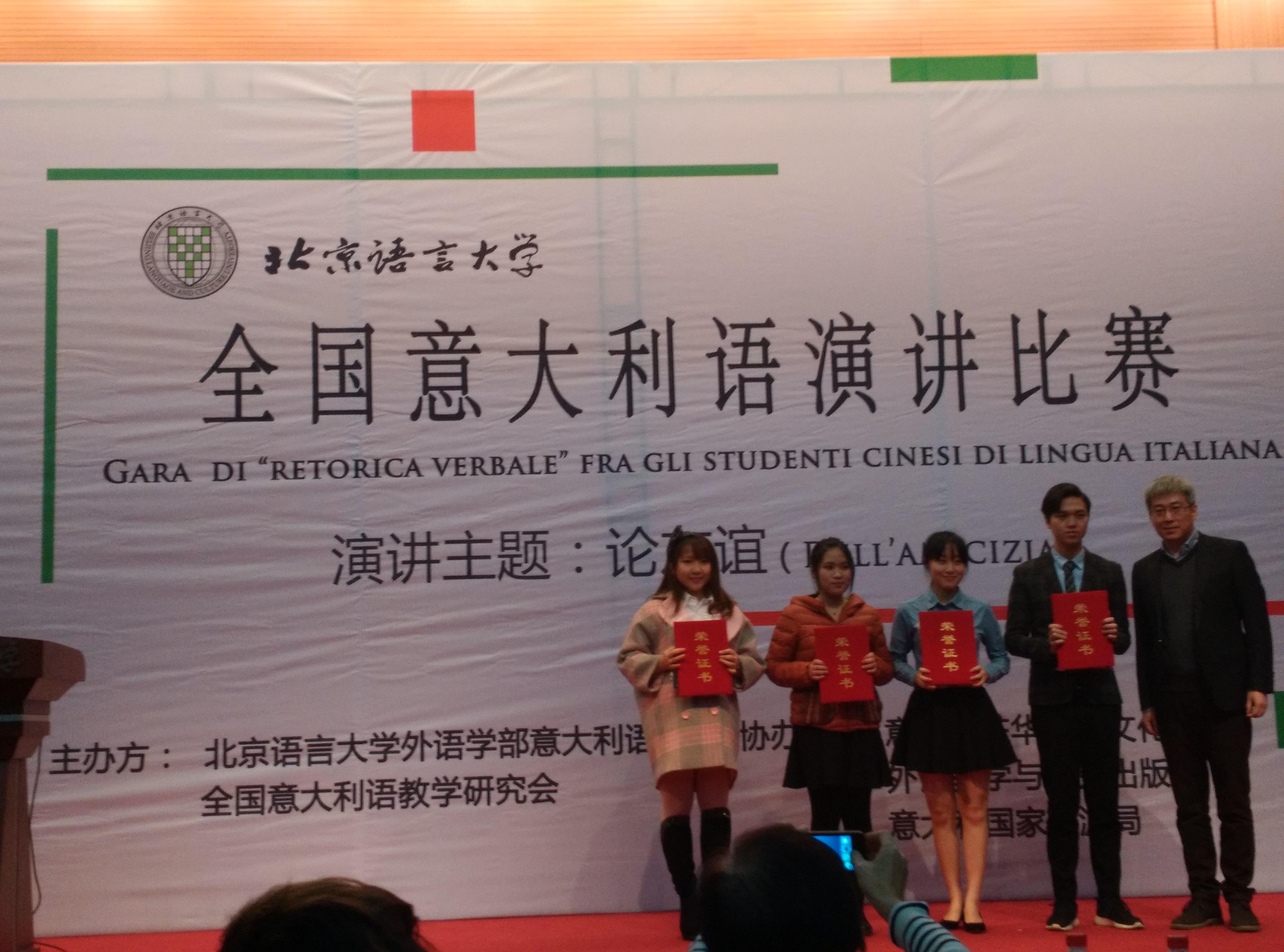 本次比赛北京语言大学外语学部意大利语系和全国意大利语教学研究会联合主办,由意大利驻华使馆文化处、外研社、意大利国家旅游局协办,是全国意大利语专业首次举办的学生演讲赛事,吸引了来自北京外国语大学、北京语言大学、对外经济贸易大学、大连外国语大学、西安外国语大学等全国15所院校选派的19名意大利语专业学生参加。