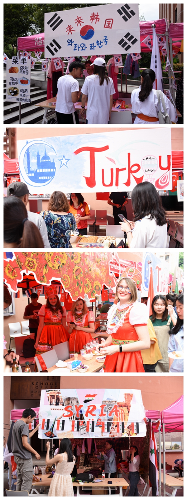 第二届国际文化节之国际风情文化展盛情开幕,来自中国、俄罗斯、塔吉克斯坦、哈萨克斯坦、墨西哥、埃及、土耳其、日本、韩国、法国、意大利、葡萄牙、德国、西班牙等18个国家的中外师生共同呈现了一场国际文化交流的盛宴。校党委委员、组织部部长、统战部部长、宣传部长徐勇出席开幕式。