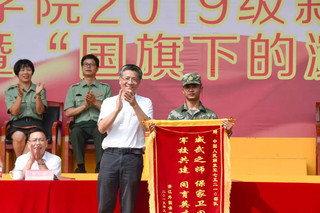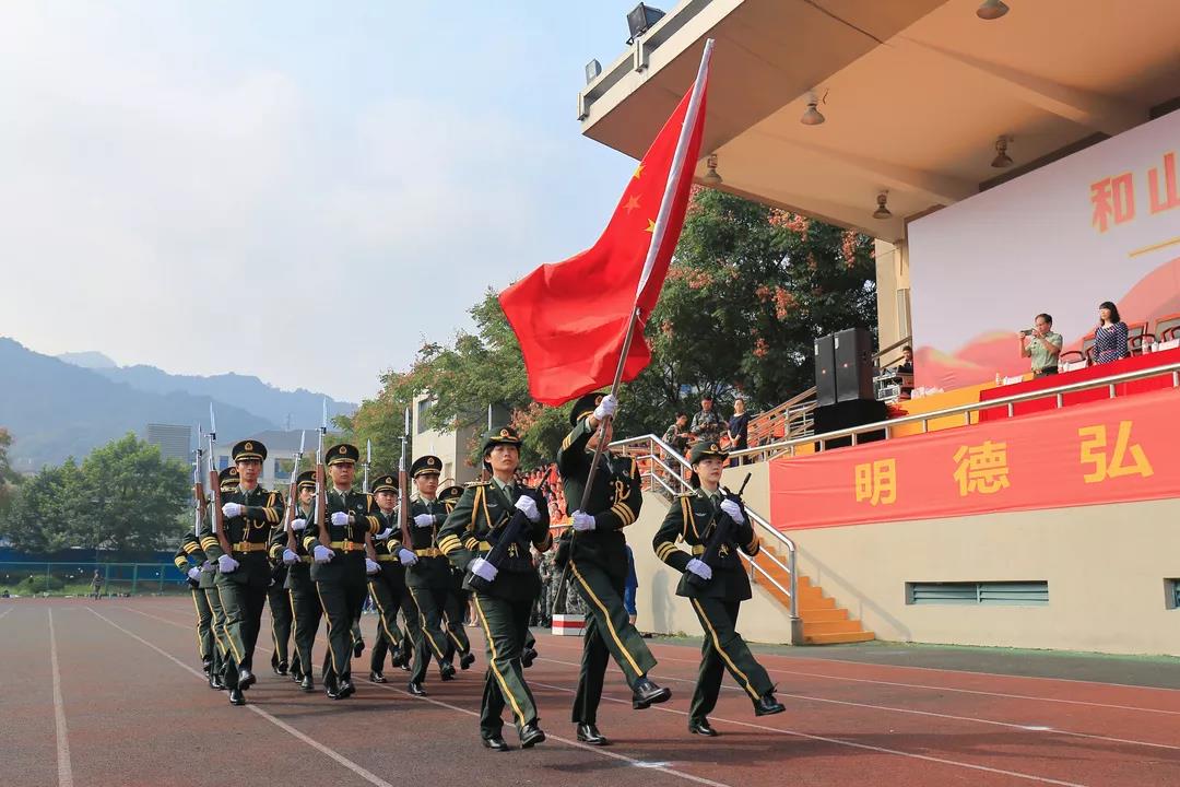 红旗飘扬,军姿挺拔,烈日之下,青春激昂。9月29日上午9时,我校于田径场举行了2019级新生军训总结表彰大会暨“国旗下的演讲”活动。校党委书记宣勇、校长洪岗等党政领导班子成员出席。承训部队全体官兵参加大会。校党委副书记赵文波主持。
