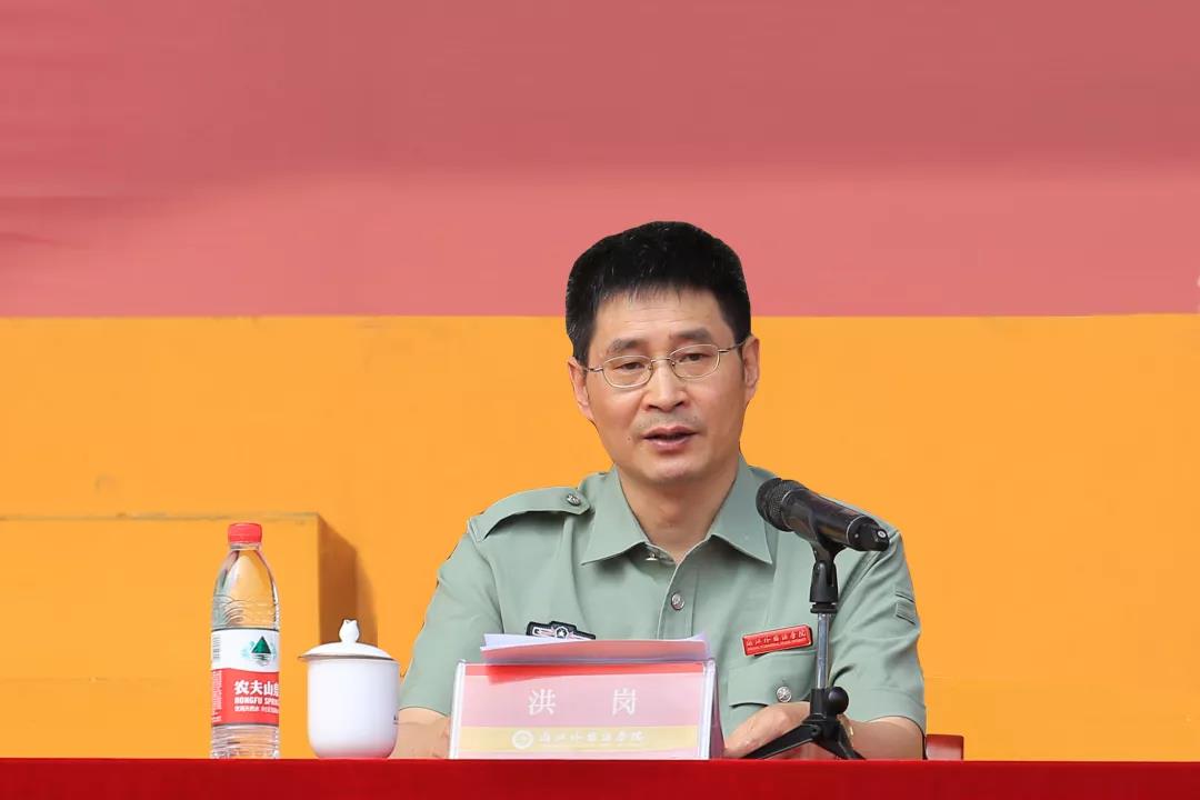 校长洪岗教授寄语学生:“保持发扬军训精神,挑战自我,磨砺自我,超越自我,担当新时代的重任。”激励同学们在今后的大学生活里能够不畏艰苦、砥砺前行;千锤百炼、勇攀高峰;敢于挑战、贡献自我。并在讲话结尾为全体教官师生送上最真挚的祝福。老生团员代表传送着巨幅国旗覆盖现场,拉下了大会的帷幕。