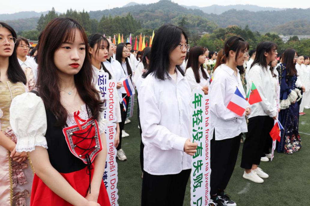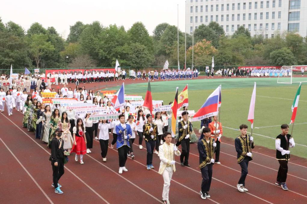 的学子们踏着铿锵有力的步伐向我们走来。他们穿着风情各异的服饰,迈着整齐划一的步伐,用嘹亮的口号展示他们的青春风采。看那飘逸在风中的各国旗帜,看那一句句用外语展示的名言,无不体现出低端影视