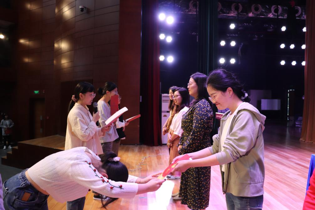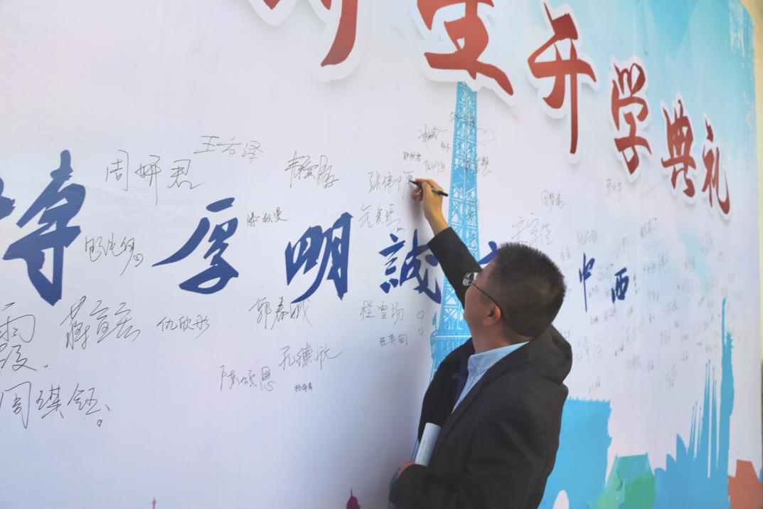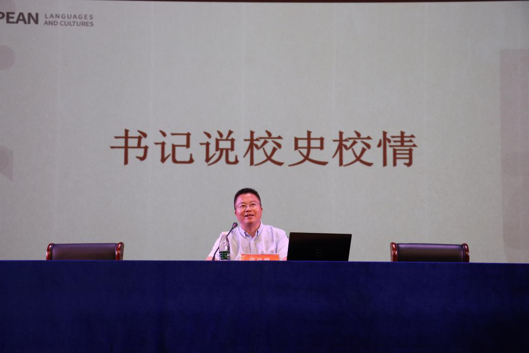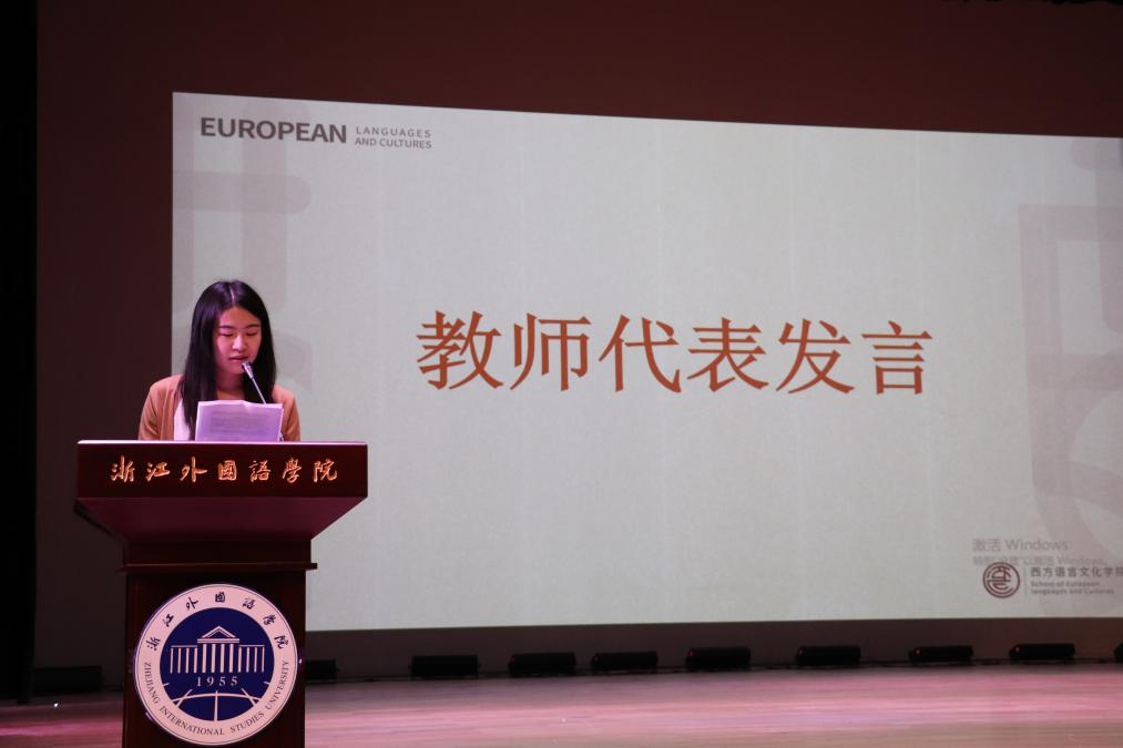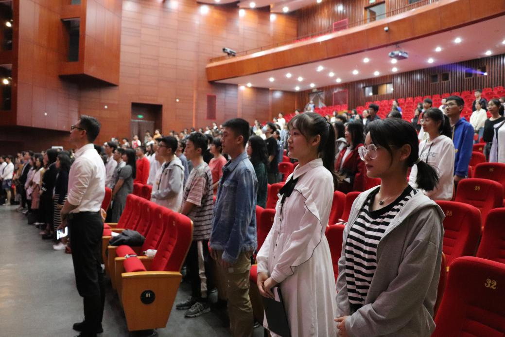 本次典礼隆重举行了拜师仪式,20级新生代表向新生班主任读拜师帖,行拜师礼,充分展现了西语学子既开拓国际视野,又重视家国情怀,传承尊师重道传统美德的优良风尚。新生班主任们亲自为同学们佩戴校徽。开学典礼后,张伟慷书记以《知史爱校,做新时代奋进浙外人》为题开讲新生第一课。