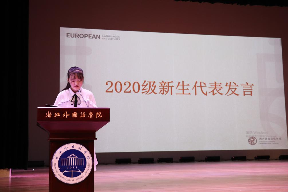 在追梦堂举行2020级新生开学典礼。院党总支书记张伟慷、副院长王忆停、党总支副书记顾小明及各系系主任、新生班主任参加典礼。典礼由顾小明主持。典礼上,张伟慷书记向2020级新生的到来表示热烈欢迎。为生于“非典”,考于“新冠”的20级新生成功经受住了疫情和高考的双重考验点赞。张书记结合“青年学子学青年习近平”教育活动,向新生们提出了三方面的希望:一是要胸怀理想、志存高远。青年只有坚定理想信念,才不会在精神上“缺钙”,才不会迷失奋斗目标和前进方向,要以青春梦想和实际行动为实现中华民族伟大复兴的中国梦作出更大贡献;二是要苦练本领、增长才干。作为语言专业的学生,要扎扎实实把专业学好,耐得住寂寞,抵得了诱惑,且广泛参与社会志愿服务,传播社会正能量,用好社会这个“第二课堂”。三是要涵养情怀、拓展视野。在当前这个全球化巨变的时代,青年学子要不断开拓国际视野,到国际舞台上展现青春风采,才能更好地讲好中国故事、发出中国声音,为世界贡献中国智慧和中国方案,为浙江建设“重要窗口”和学校“三个地”建设贡献智慧力量。