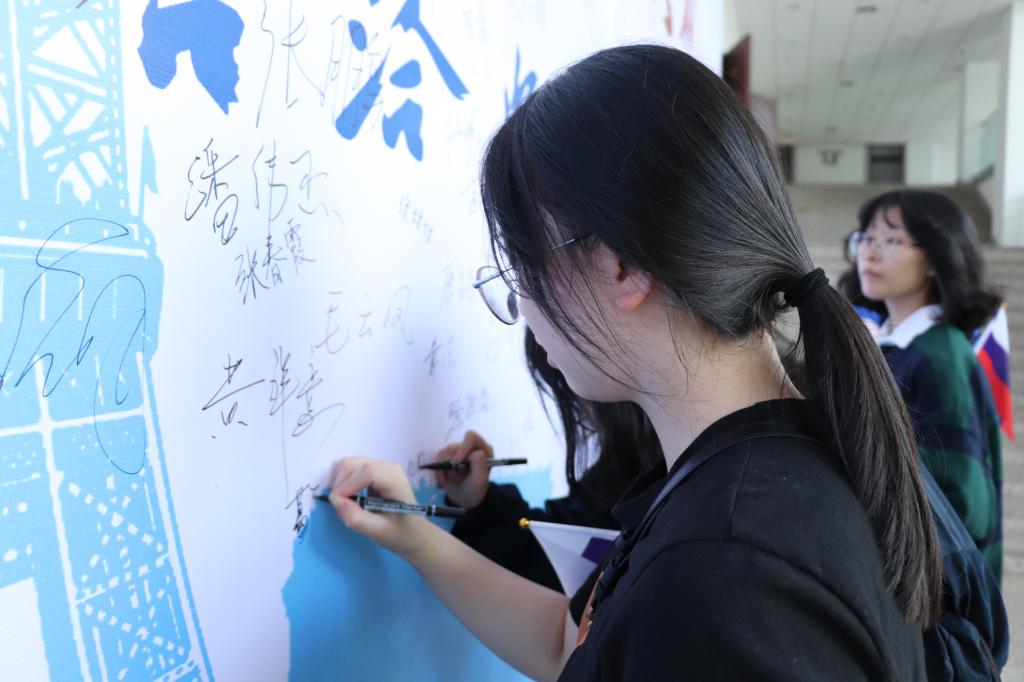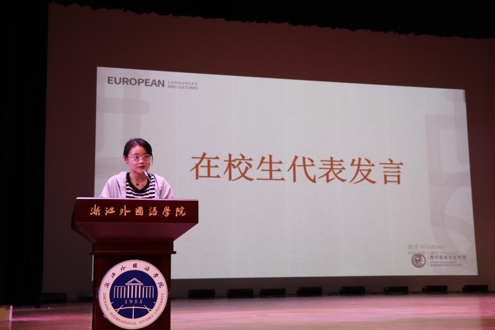 新生班主任代表周梦琪老师向新生们提出了四方面期望:重视自律,学会独立思考,树立正确坚定的价值观,成为有情趣、有情怀、有温度的青年人。老生代表17俄语1班吴芯怡同学分享了自己的学习经验,鼓励大家做好生活的规划者和掌控者。新生代表20级法语1班张可冉表达了对大学的憧憬,同时树立新目标,努力成长为兼具家国情怀和国际视野的高素质应用型人才。