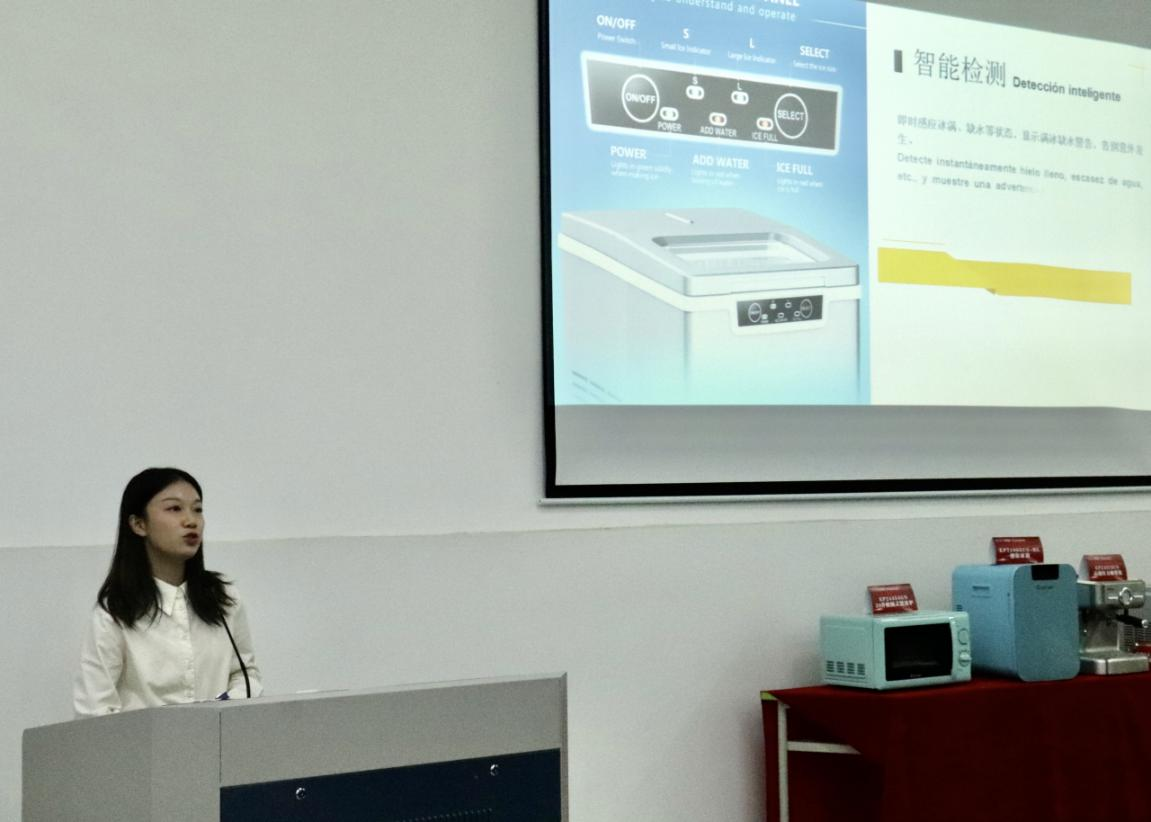 针对豪雅集团提供的四款跨境商品,20名选手在规定的3分钟内依次采用双语进行展示。