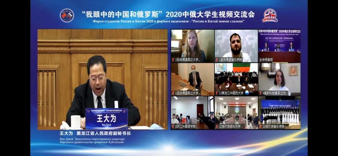 15日下午,由黑龙江省中俄友好、和平与发展委员会地方合作理事会与俄罗斯联邦驻哈尔滨总领事馆共同举办了“我眼中的中国和俄罗斯”2020中俄大学生视频交流会。副校长柴改英、国际交流合作处处长李执桃,“一带一路”学院、华侨学院、国际学院党总支书记、副院长盛玲,低端影视