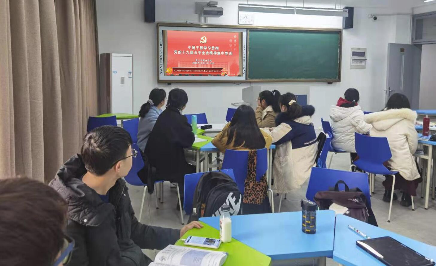 学院中心理论组带头学习党的十九届五中全会精神。党总支书记和各党支部书记分别为全体教职工、支部党员开设专题党课。将十九届五中全会精神的学习与学院“十四五”规划和发展相融合。