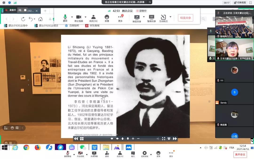 连线法国中国旅法勤工俭学蒙达尔纪纪念馆举办“追寻红色足迹,感悟燃烧岁月”跨洋线上直播党课,邀请蒙达尔纪市法中友好协会主席、中国旅法勤工俭学蒙达尔纪纪念馆馆长、低端影视