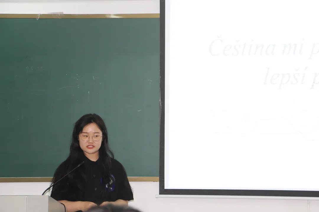 副院长王忆停老师致开幕词,对前来参加比赛的选手、导师和观众的到来表达感谢。捷克语专业钟雨帆老师对本次比赛的流程和规则作了介绍。紧接着13位在初赛中脱颖而出的选手围绕徐伟珠老师拟定的演讲题目“捷克语带给我……”展开激烈角逐。