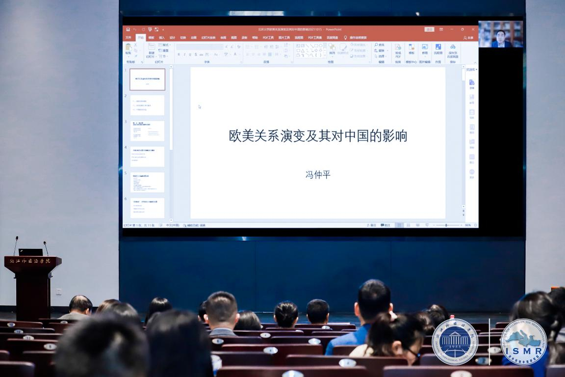冯仲平谈到中俄欧美关系变动及其趋势。他指出,欧美既是一个军事同盟、又是一个政治联盟,在冷战之后,欧美同盟关系面临了重大挑战。对冷战之后欧美同盟关系面临的挑战、未来欧美关系发展可能性作出分析。他认为,中美欧三国之间的全新关系将兴起,中美关系将以对抗为主要特征,中美均会拉拢欧洲,中美欧将进行三国互动,塑造全新的国际格局。