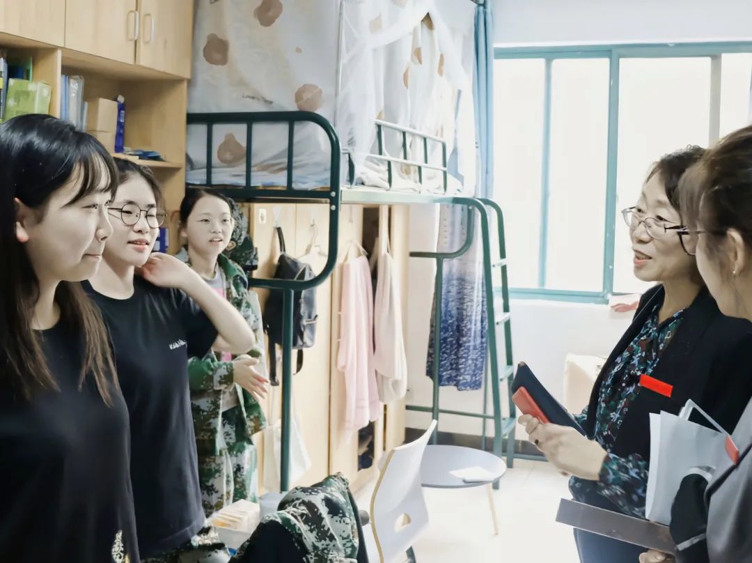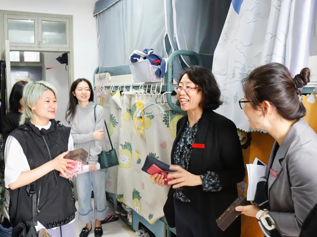 10月27日中午,在金秋和山的丹桂馨香以及军训迷彩的满目朝气中,副校长柴改英教授来到雅仪苑2-522、523寝室,走访关心同学们的学习生活。学院党总支书记毕莹、副书记方盼以及辅导员翁佳薇老师一同走访寝室。