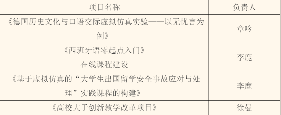 省级高校课程思政立项示范课程1门、教改项目1项